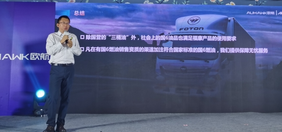 【福田歐航歐馬可事業部營銷公司服務副總經理彭仕順,詳解國六全程無憂服務保障政策】