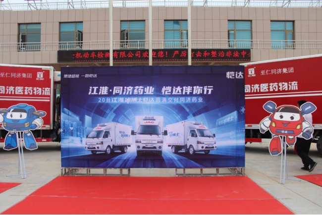 首批交付的20臺江淮冰博士愷達產品,搭載的為江淮銳捷特1.6VVT“中國芯”十佳發動機,120馬力,提速快,效率高,為醫藥物流運輸提供強勁動力。