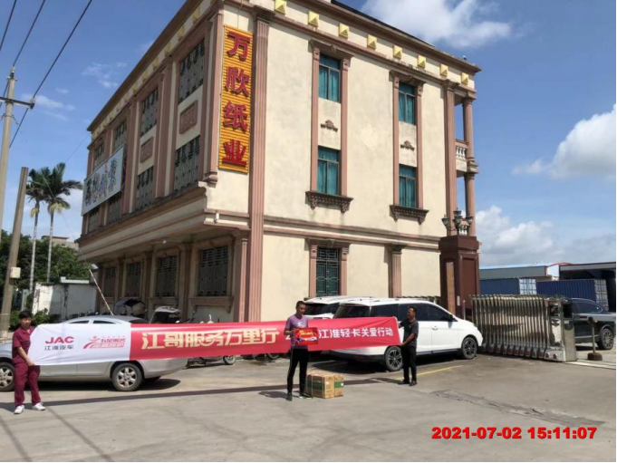 7月2日,江淮輕卡汕頭順龍服務站站長帶領工作人員主動走訪汕頭市萬欣紙業有限公司,為客戶送去主動車輛檢查并宣傳車輛使用及維保中的注意事項。
