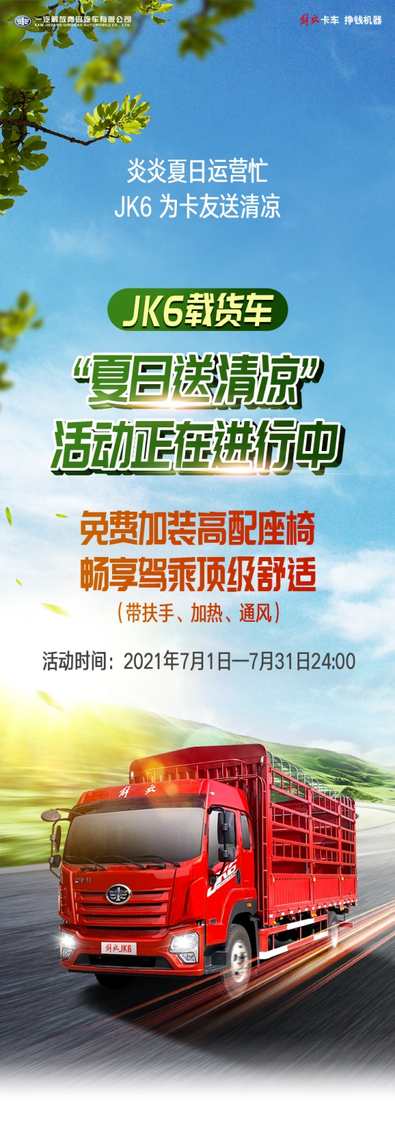 JK6載貨車夏日送清涼,免費加裝高配座椅!