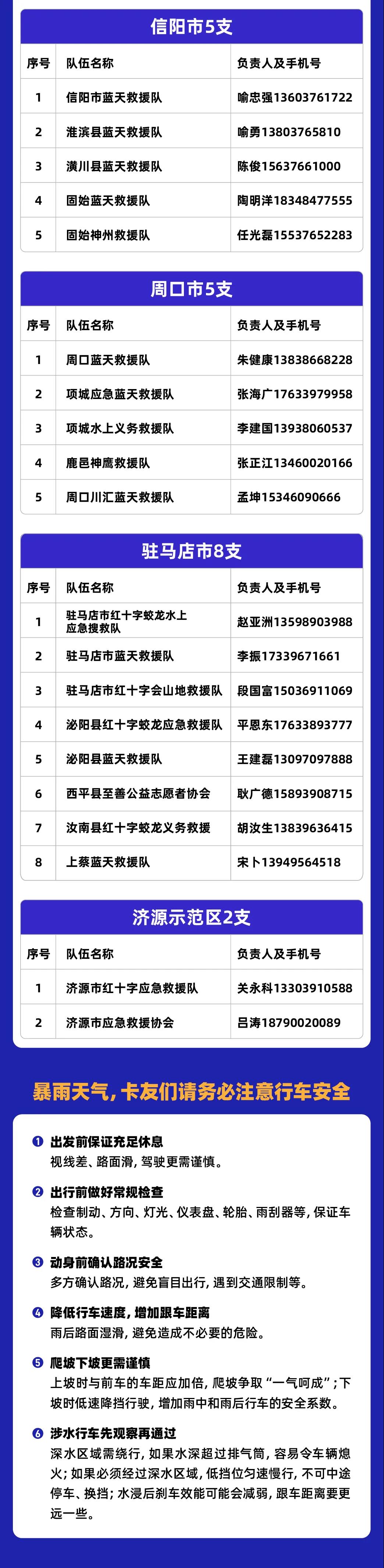 廣大卡友在降水地區或路段如在途遇到困難,請撥打福佑卡車服務熱線400 056 5666,或聯系如下當地救援單位。