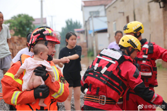 災情就是命令,救援刻不容緩。面對洪魔猖獗,黨和政府沒有退縮。應急管理部第一時間啟動消防救援隊伍跨區(qū)域增援預案,連夜調派周邊7省消防救援專業(yè)隊伍緊急馳援河南防汛搶險救災。當受災群眾看到身著亮眼橙色制服的“藍朋友”們到來,一種發(fā)自內心深處的信賴和感謝隨著熱淚迸發(fā)而出。