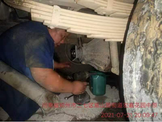 客戶的生意就是奧鈴人的命!得知鄭州卡友受困,以客戶服務宗旨的奧鈴輕卡勇奔現場。位于附近的奧鈴輕卡服務商于接到李師傅的求助后,初步判斷為車輛涉水導致主減速器或半軸損壞,及時協調好配件后就動身立即前往。雖然途中遭遇市內道路封閉,但服務站人員還是緊急聯系客戶開具社區(qū)證明,最終順利抵達。從李師傅撥通救援電話到服務人員到達現場,只過去了不到2個小時。在張紅軍和李文奎兩位師傅的全力搶修下,當日21點20分車輛維修完畢。但李師傅卻顧不上多說第二句感謝話,再次緊急投入到物資轉運工作中。