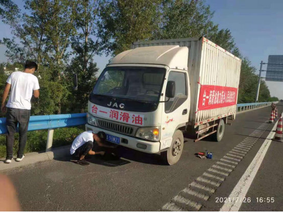 在京港澳高速福寧集附近便有一輛運(yùn)輸救災(zāi)物資的車(chē)輛左前輪爆胎、繼電器盒損壞,聯(lián)系到江淮輕卡新鄉(xiāng)新裕服務(wù)站尋求救援。抗洪救災(zāi),物資運(yùn)輸爭(zhēng)分奪秒。服務(wù)站了解情況后,立即派維修救援隊(duì)伍趕往現(xiàn)場(chǎng),緊急更換輪胎,然后快速處理線路問(wèn)題,以最快的速度完成了維修作業(yè)。