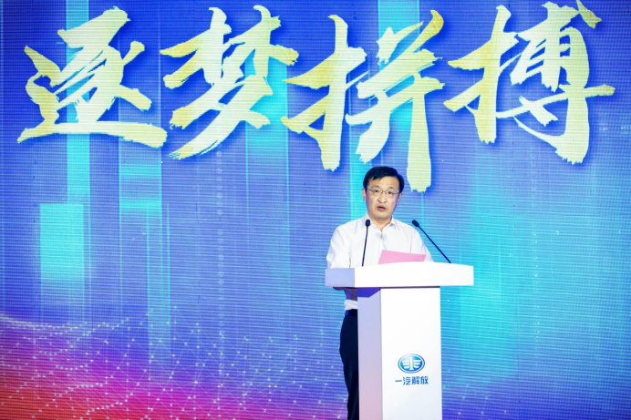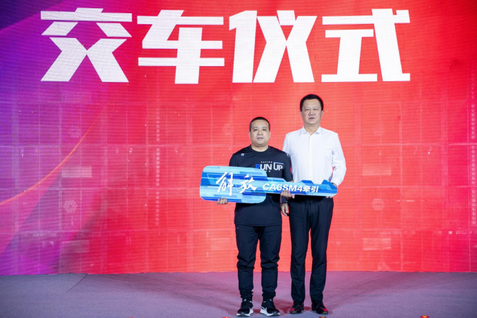 一汽解放發動機事業部副總經理黃南翔向用戶朋友交付代表財富的車鑰匙