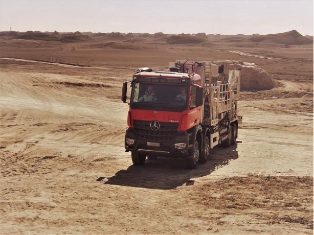 作為此次 “尋星之旅”的另一場重頭戲,梅賽德斯-奔馳卡車還在格爾木無人區舉行了國內鮮見的重卡越野試乘試駕活動,對車輛性能有很高的要求。作為底盤領域的領導者,梅賽德斯-奔馳Arocs的產品優勢在非鋪裝路面上得到了淋漓盡致的展現。六個月連續作業的泵車、在沙漠中行進的石油測井車、緊急時刻臨危受命的消防救援車……Arocs以不變品質,專業應對百變需求。憑借Arocs的出色性能,2021年梅賽德斯-奔馳繼續引領國內進口底盤車市場。