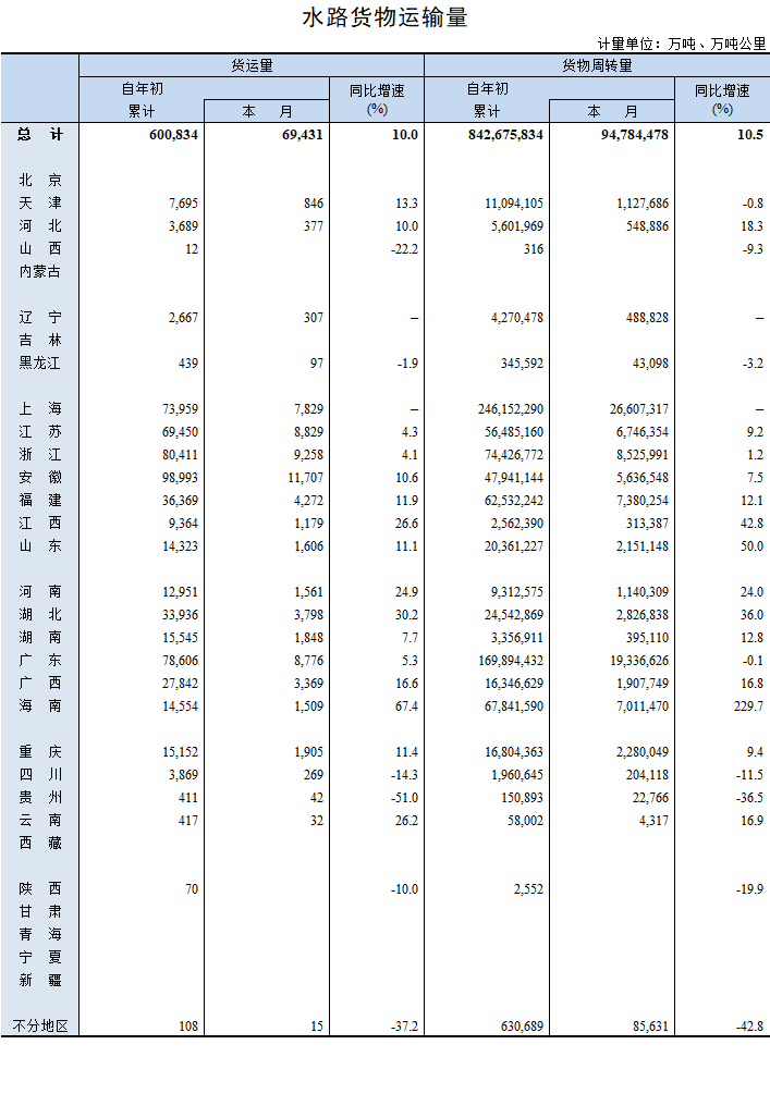 2021年9月水路貨物運輸量