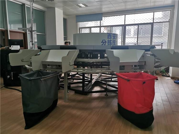 末端投遞集約化漸呈態勢,特別是在三四線城市、縣域及鄉村地區,快遞網店分散且運營成本較高,同軌構建共同的分揀中心及末端配送網點,可有效解決“最后一公里”的配送問題。西安郵電大學惠小強教授帶來的易分云派,是專門針對于快遞企業中末端網店的“轉盤式快遞包裹自動分揀機”。該系統結構簡單、占地面積小,操作人員僅需2-3人。一般情況下,分揀速度每小時為4000-8000單。