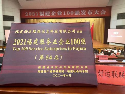 好運聯(lián)聯(lián)榮膺2021福建服務(wù)業(yè)企業(yè)100強(第54名)