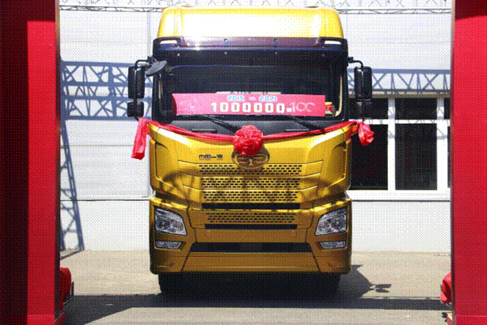 4月14日,隨著一輛身披金甲的JH6領航版重卡緩緩駛下生產線,解放青汽即墨工廠生產100萬輛暨用戶交車儀式正式拉開帷幕。