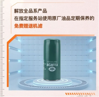 1、終身免費(fèi)送濾芯:解放全品系產(chǎn)品,在指定服務(wù)站使用原廠油品定期保養(yǎng)的,免費(fèi)贈(zèng)送機(jī)濾