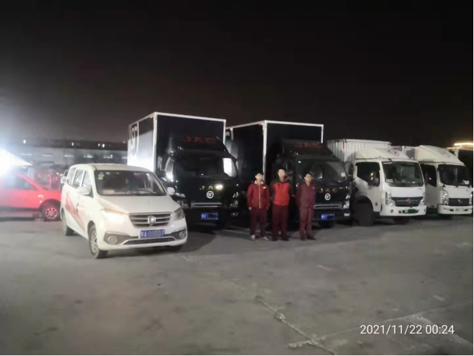 11月21日晚10點左右,這些快遞車子已陸續返回,但江淮輕卡河南正裕服務站服務人員的工作才剛剛開始。按計劃,他們需要對這12臺車進行檢查、保養維護。之所以選在夜間進行保養維護工作,也是因為車輛白天忙于運輸,為避免保養工作對日常運輸產生影響,特地選擇在夜間開展上門保養工作。