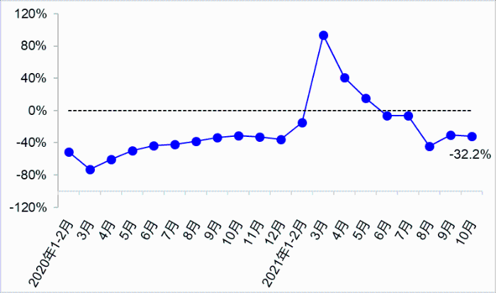 10月,完成營業性客運量7.3億人,同比下降32.2%,兩年平均下降31.6%。其中,完成公路營業性客運量4.2億人,同比下降42.0%;完成水路客運量1669萬人,同比下降15.7%。
