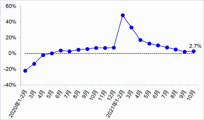 10月,完成營業性貨運量45.4億噸,同比增長2.7%,兩年平均增長4.9%、增速較9月回升1.1個百分點。其中,完成公路貨運量34.2億噸,同比增長3.4%;完成水路貨運量7.1億噸,同比增長0.9%。