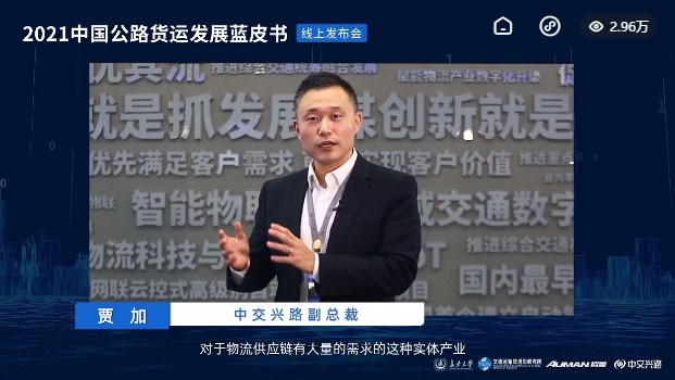藍皮書指出,數字化發展已成為我國公路貨運行業近年來的關鍵詞。中交興路副總裁賈加在直播中提到,公路貨運行業將借著工業互聯網的東風,實現數字化轉型發展。同時,中交興路等物流科技平臺通過科技賦能,將不斷推動公路貨運不斷進行數字化轉型升級。