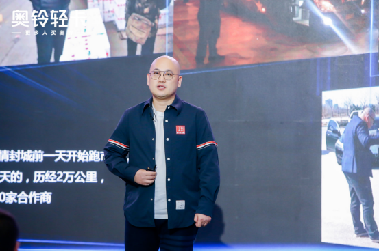 是的,如果不是因為臺上站著的人是奧鈴輕卡總裁李杰,你一定會以為這是一場脫口秀表演。