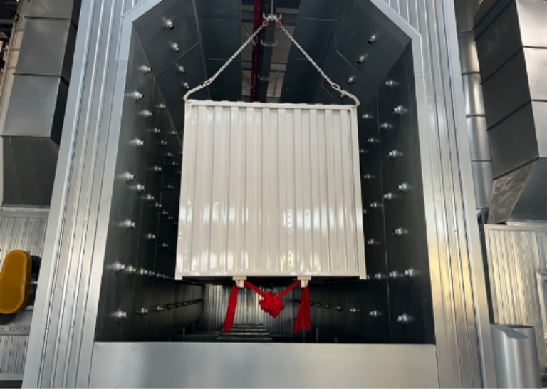 粉末噴涂系統則擁有全國專用車行業最大的噴粉設備——德國瓦格納爾噴涂設備,可通過積放鏈輸送,工件激光識別,實現往復機自動噴涂。該系統配備大旋風粉末回收裝置,粉末自動回收再利用,粉末利用率可達90%以上。該粉房是目前國內最大的通過式粉房,能夠噴涂自卸車、廂式車、倉欄車多種產品。人工噴房單獨使用時可噴涂滿足粉房進出要求的所有產品。