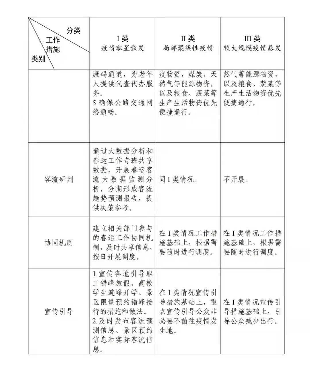 ?強化信息報送共享。各地春運工作專班要建立工作信息日報制度,加強部門間信息互通,及時共享疫情發展態勢、天氣變化、職工錯峰放假、高校學生避峰開學、景區限量預約錯峰入園、客流運行、運輸組織等信息。各?。▍^、市)春運工作專班要按照國務院聯防聯控機制春運工作專班的要求,及時報送春運疫情防控和運輸服務有關信息、工作動態及需協調解決的事項。
