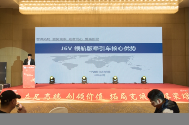 一汽解放汽車銷售有限公司江蘇商代處牽引品系經理袁澤先生詳細介紹了解放的新產品——J6V的產品定位及升級,通過全方位講解,讓客戶更直觀地了解解放J6V產品。