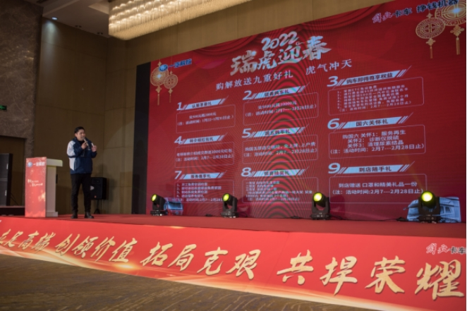 2月28日,一汽解放江蘇戰區2022年大拜年活動——徐州站成功舉辦。一汽解放汽車銷售有限公司江蘇商代處經理王念東先生、一汽解放汽車銷售有限公司江蘇商代處大客戶兼自卸品系經理朱文成先生、一汽解放汽車銷售有限公司江蘇商代處牽引品系經理袁澤先生、徐州朗馳汽車銷售服務有限公司總經理李峰先生及徐州朗馳新老用戶朋友合計120余人出席本次活動。