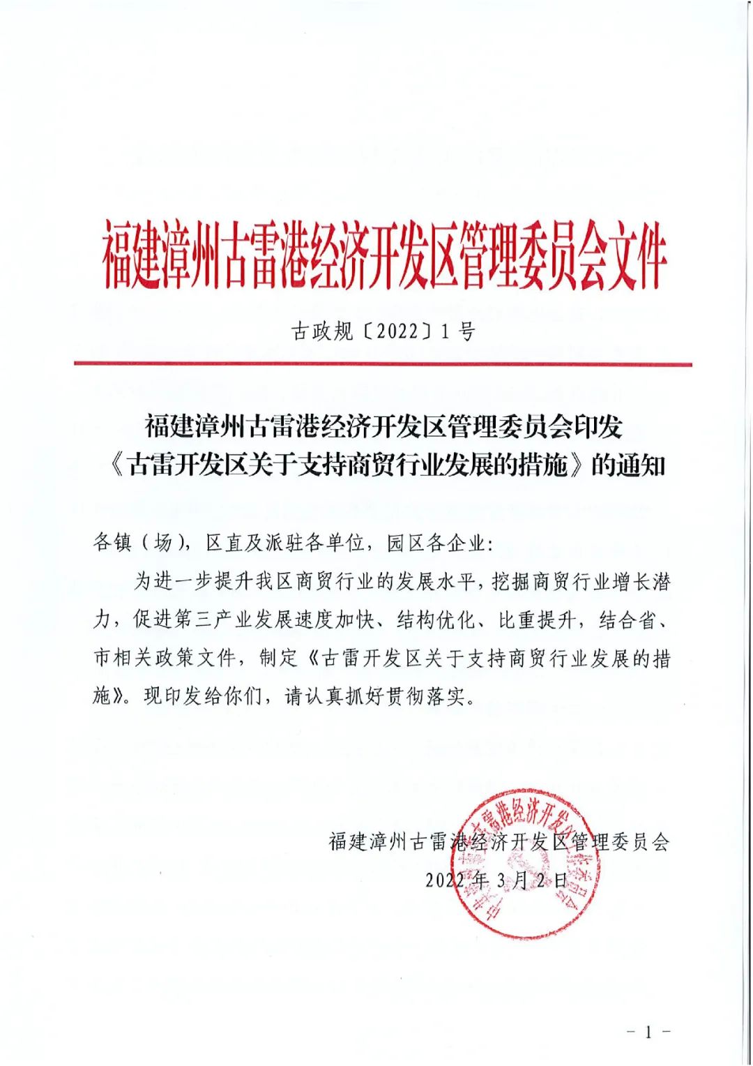 古雷開發區關于支持商貿行業發展的措施