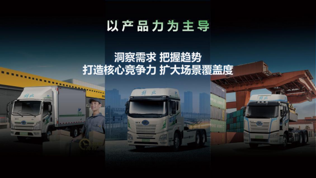 一汽解放將致力于成為E時代全球商用車技術引領者、標準制定者、價值創造者,為廣大客戶提供“中國第一、世界一流”的新能源智慧交通運輸解決方案。要逐步實現新能源市場份額高于傳統車,新能源銷量占比高于全行業的“兩高”目標。新能源的時代已經來臨,一汽解放作為商用車行業的引領者,國家雙碳戰略目標的踐行者,正在踏著堅實的步伐,披堅執銳,構建解放新能源轉型的恢弘藍圖。解放將以推動新能源汽車行業健康發展為重要使命,持續為用戶創造價值,為社會創造財富,為國家的碧水藍天貢獻解放力量。