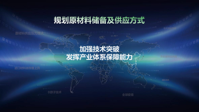 隨著新能源汽車逐漸上量,產業鏈穩定的重要性逐漸提升,特別是原材料的供應能力和壓力逐漸增大,對外部進口材料的依存度不斷上升,甚至出現卡脖子局面。受全球疫情、國際局勢影響,貴金屬、芯片等核心零部件供應出現風險。