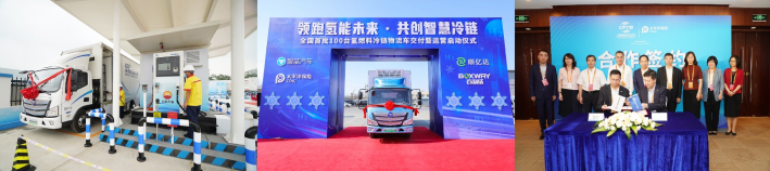 在打造卓越產品的同時,智藍汽車更積極鏈合氫氣制、儲、運、加、氫燃料整車及核心零部件等全產業鏈資源打造氫燃料運營方案。2021年,智藍汽車前后與中石油達成合作,完成首座加氫站落地投運;服貿會期間與與太平洋產險達成戰略合作,以優質保險服務解決氫燃料電池商用車運營、維保等后顧之憂,共創用戶價值,加快氫能場景化應用范圍的不斷擴大。