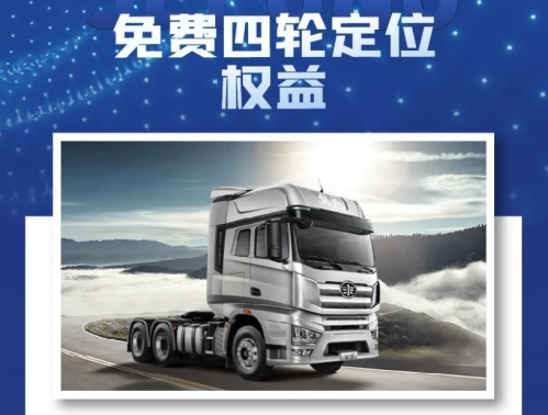 解放為6X2、8X4雙前軸車輛提供1次免費四輪定位服務(wù)權(quán)益。在車輛的早期使用過程中,為前輪定位參數(shù)提供檢測及調(diào)整,減少輪胎磨損,降低爆胎危險,增加駕駛控制感,讓行車更安全。