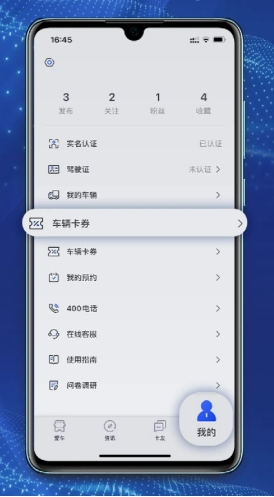 第一步:用戶在“解放行”APP綁定車輛后,選擇“我的”頁面,點擊“車輛卡券”選項;