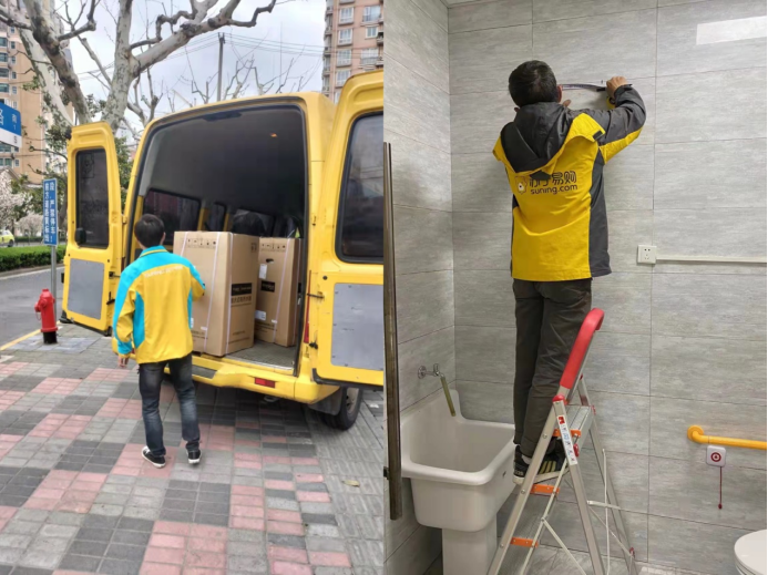 3月30日,蘇寧易購上海大區接到需求,上海市虹口區一事業單位要緊急購置安裝熱水器。因為該單位工作人員要住在單位,以保障抗疫時期工作開展的同時,減少流動。蘇寧易購接到需求后,立即調配資源和人力,迅速安排綠色通行車輛從倉庫調貨,于當天16點將客戶需要的3臺熱水器進行配送,當天晚上安裝到位,交付客戶使用。