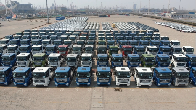 ▲數(shù)百臺(tái)歐曼自動(dòng)擋重卡整裝待發(fā)