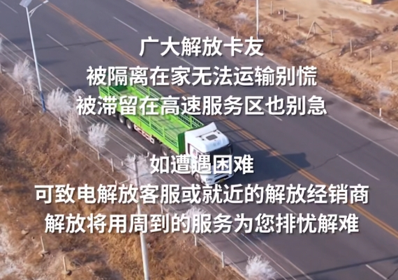 疫情當前,風雨同擔,攜手而行,共渡難關。一汽解放心系廣大卡友,傾力踐行感動服務及關愛行動,為卡友們提供多方面的堅實保障,在此,提示廣大解放用戶:被隔離在家無法運輸別慌,被滯留在高速服務區也別急,如遭遇困難,可致電解放客服或就近的解放經銷商,解放將盡周到的服務為您排憂解難!