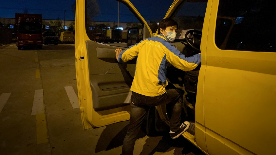 以往喧鬧的上海街市突然安靜了下來,空蕩蕩的街道讓王業林很不適應,感到恐慌,“真空曠,空曠得嚇人,和我平時看到的完全就不是同一個上海。說實話,每天出車,有擔心,有恐懼,但也有一份沉甸甸的使命感,盡我所能,多送一件是一件。”