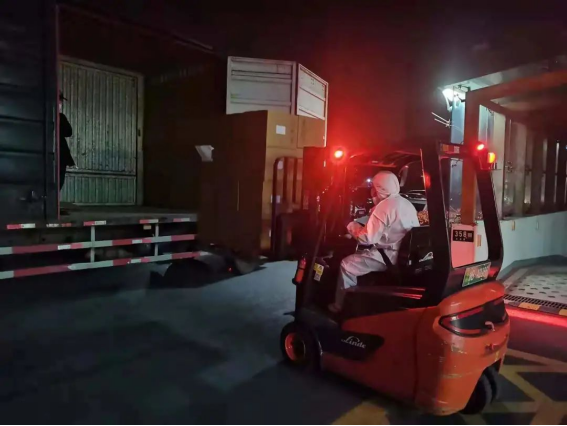當晚9時許,“戰(zhàn)疫”正式打響。林德工程師兵分兩路,一路人馬趕往衛(wèi)健委倉庫,協(xié)助轉(zhuǎn)運抗原試劑;另一路人馬奔赴抗原指定配送站點準備抗原接收任務(wù)。林德叉車性能可靠,動力強勁,操作靈巧,高效配合堆垛裝卸作業(yè)。經(jīng)過短短數(shù)小時的奮戰(zhàn),數(shù)百萬支抗原試劑順利從倉庫轉(zhuǎn)移到指定地點,保障了9號凌晨5點30分各社區(qū)街道抗原發(fā)放的順利進行。本次緊急任務(wù)圓滿完成,但是林德服務(wù)工程師及林德叉車依然堅守崗位,時刻準備著迎接新的任務(wù),為抗疫助力。