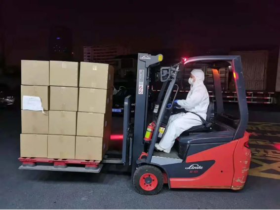 此輪疫情初期,林德上海分公司為了應(yīng)對各種可能發(fā)生的突發(fā)狀況,特地安排部分服務(wù)工程師留守公司。3月28日5時起,上海啟動全市范圍內(nèi)新一輪切塊式、網(wǎng)格化核酸篩查。浦東國際機場貨運站內(nèi),為運載民生類和抗疫類物資,需要提供全天候不間斷的服務(wù),且所有人員都不能進出。林德工程師在極短的準備時間內(nèi)按時到位,克服各種困難,全力保障機場貨運高效順暢運轉(zhuǎn)。上海公司所在的七寶虹橋板塊,作為封控重點區(qū)域,由于防控物品搬運量激增而人手有限,政府需要一批方便操作且高效適用的搬運設(shè)備來提高效率。林德上海立刻做出響應(yīng),根據(jù)工況需要相應(yīng)安排了電動托盤堆垛車、電動托盤搬運車、手動托盤車及塑料托盤等若干設(shè)備的及時到位,有效支援抗疫物資的調(diào)配。