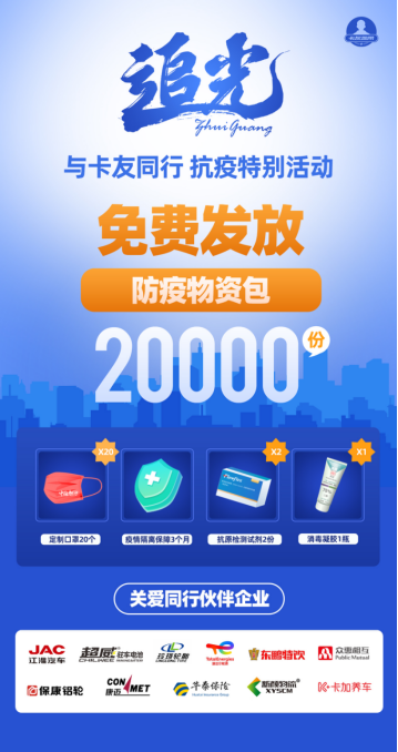 關(guān)愛仍在延續(xù)。為致敬堅守一線的正能量貨車司機(jī),同時進(jìn)一步凝聚社會各界的力量助力卡友前行,4月25日,卡友地帶“追光·與卡友同行”抗疫特別活動全面啟動,2萬份“防疫物資包”也將從即日起陸續(xù)發(fā)放至卡友手中。