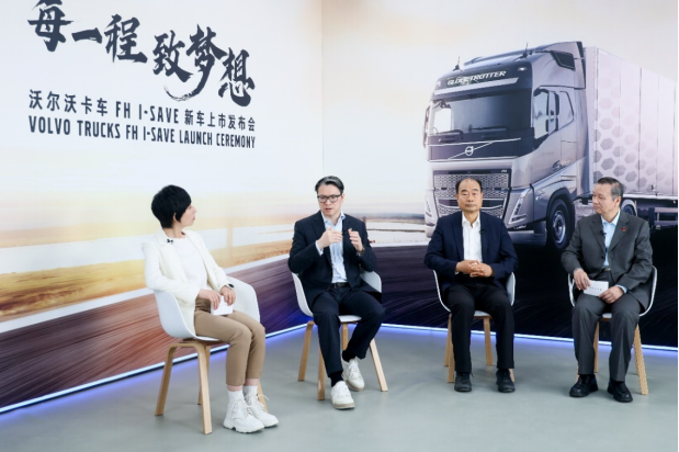沃爾沃卡車(chē)全球高級(jí)副總裁、沃爾沃卡車(chē)中國(guó)總裁 董晨睿先生(左二)、資深媒體人 張麗玥女士(左一)