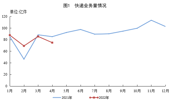 4月份,全國快遞服務企業業務量完成74.8億件,同比下降11.9%;業務收入完成740.5億元,同比下降10.1%。