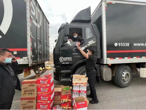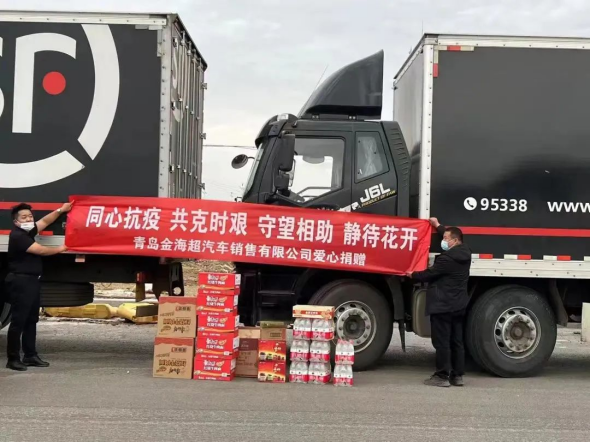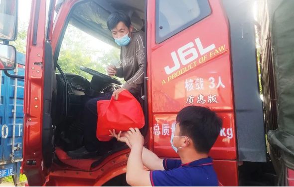 4月2日,解放400客服接到了一位卡友的來(lái)電:運(yùn)送物資的車(chē)隊(duì)滯留在青島萊西的高速口2天,車(chē)內(nèi)已經(jīng)沒(méi)有吃的了,希望能得到幫助。4月以來(lái),出于疫情防控的需要,外地車(chē)輛進(jìn)出萊西區(qū)域各高速出入口需要接受?chē)?yán)格的檢查。運(yùn)送防疫物資的順豐車(chē)隊(duì),因?yàn)榕抨?duì)等待下高速,已經(jīng)在高速口滯留兩天時(shí)間了,車(chē)內(nèi)也都斷水?dāng)嗉Z。解放客服了解到車(chē)隊(duì)的救援請(qǐng)求后,馬上聯(lián)系到山東商代處幫助處理。山東商代處立刻指派車(chē)隊(duì)所在區(qū)域的經(jīng)銷商青島金海超前往高速口救援,青島金海超馬不停蹄地趕往車(chē)隊(duì)的臨時(shí)停靠地,將水和食物搭配好,一輛車(chē)接著一輛車(chē)交到車(chē)隊(duì)卡友手中。車(chē)隊(duì)卡友收到準(zhǔn)備齊全的生活物資后,紛紛表示感謝,同時(shí)也感動(dòng)于解放經(jīng)銷商能在車(chē)隊(duì)已經(jīng)離開(kāi)滯留地的情況下,還能繼續(xù)趕來(lái)為車(chē)隊(duì)送上物資。有一位車(chē)隊(duì)卡友更是感慨道:“沒(méi)想到一個(gè)電話解放公司能這么重視,而且能慰問(wèn)整個(gè)車(chē)隊(duì),為解放大愛(ài)精神感動(dòng)!”