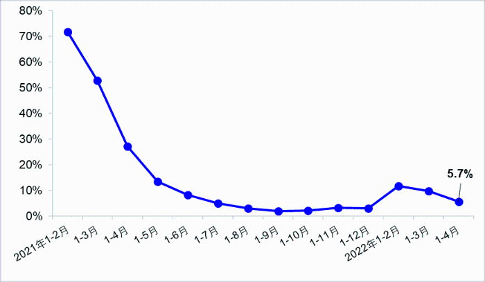 4月,完成交通固定資產投資2773億元,同比下降2.7%。其中,完成公路投資2054億元,同比下降0.8%;完成水運投資122億元,同比下降9.3%。