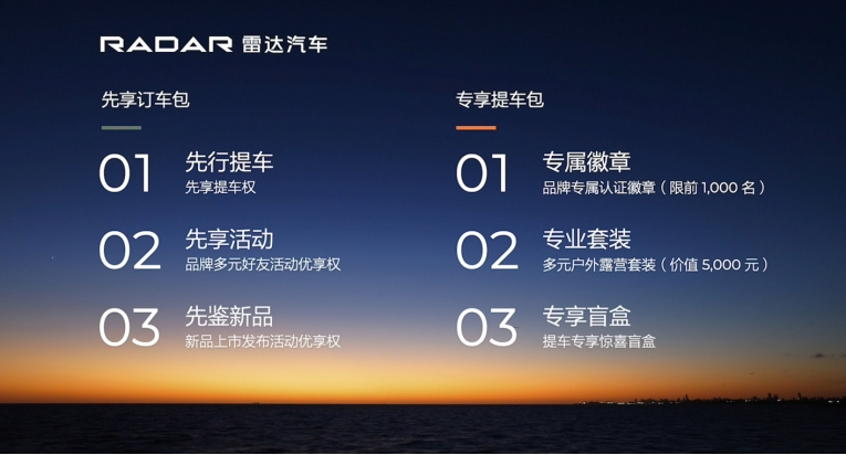 機遇與挑戰(zhàn)并存,實力與擔(dān)當(dāng)并濟。新能源汽車市場滲透率提升,但“洗牌”還在繼續(xù);多元生活當(dāng)潮,但對自然環(huán)境的保護仍需加強。雷達汽車品牌背靠吉利集團,具有研發(fā)、生產(chǎn)、采購、銷售體系等優(yōu)質(zhì)資源,并將基于吉利集團強大的物聯(lián)網(wǎng)技術(shù),立足“新能源+多元”新賽道,精準(zhǔn)布局多元生活市場,并將持續(xù)構(gòu)建無憂的生活方式、無界的探索精神、無痕的環(huán)保理念文化,讓用戶的戶外生活展現(xiàn)多元魅力。