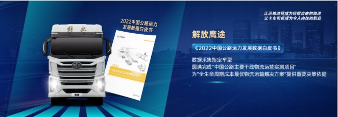 同時(shí),一汽解放青汽作為車輛提供方,不僅全面還原了干線運(yùn)輸?shù)膶?shí)際情況,為《2022中國公路運(yùn)力發(fā)展數(shù)據(jù)白皮書》提供重要數(shù)據(jù)支撐,為物流行業(yè)的發(fā)展變革提供研究依據(jù),更以優(yōu)秀的實(shí)戰(zhàn)數(shù)據(jù),展現(xiàn)了解放鷹途符合干線運(yùn)輸?shù)?/span>“硬實(shí)力”。
