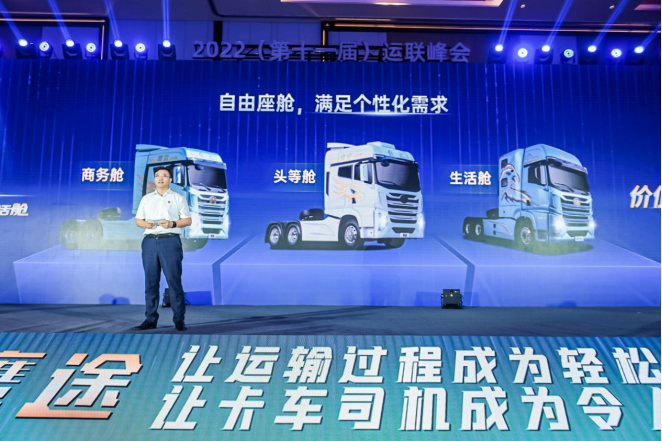 一汽解放常務(wù)副總經(jīng)理、青島整車事業(yè)部總經(jīng)理孔德軍從自由座艙、價(jià)值引領(lǐng)、尊領(lǐng)智享、社群生態(tài)等多個(gè)維度對(duì)解放鷹途的價(jià)值進(jìn)行了全面解讀:基于干線物流車輛的發(fā)展趨勢(shì),一汽解放以“價(jià)值、舒適、活力”為產(chǎn)品理念,打造行業(yè)首創(chuàng)鷹途商務(wù)艙、頭等艙、生活艙三大系列產(chǎn)品,滿足干線物流客戶的個(gè)性需求;以解放智慧動(dòng)力域、主動(dòng)式進(jìn)氣格柵、預(yù)見性巡航、柔性驅(qū)動(dòng)等核心技術(shù),為用戶提供全生命周期成本最優(yōu)的物流解決方案。