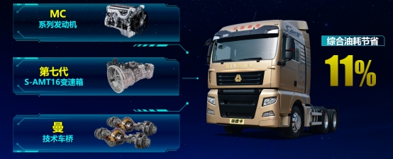 中國重汽MC系列發動機+第七代S-AMT16變速箱+曼技術車橋打造的專屬動力鏈,歐標極致性能,動力強勁更高效,綜合油耗節省11%。且B10壽命高達180萬公里,引領行業至高水平!