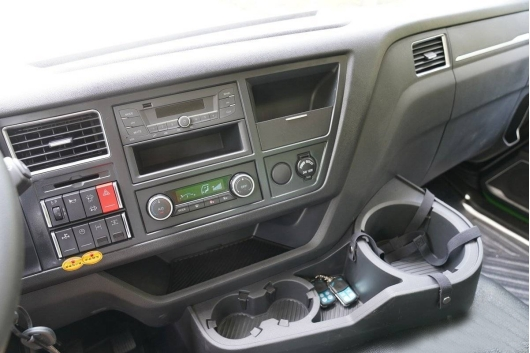 在中控臺設計上其配置算不上很豪華,這也是因為自卸車的運營范圍比較小,避免一些豪華配置也可以節省買車成本。不過該車中控臺是配置有多個開放式儲物槽和水杯托架,這是考慮到自卸用車需要很多分散的小儲物空間,用來放置票據、水杯之類的物品。