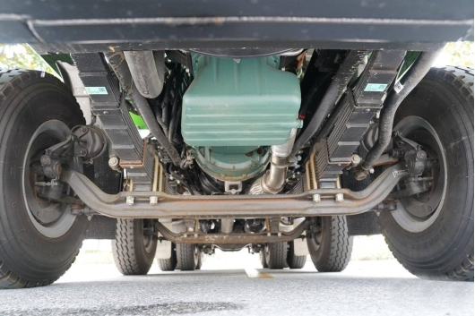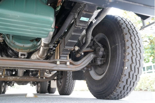 對于自卸車來說,舉升時的安全性也十分重要,為了使其穩定性更好、安全性更高,實拍車型針對舉升進行樂很多優化設計,如車架加寬、板簧距加寬、前輪輪距加寬等,無論是行駛安全性還是舉升穩定性,都提升很多。
