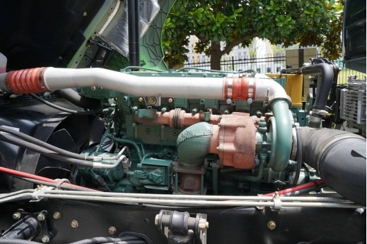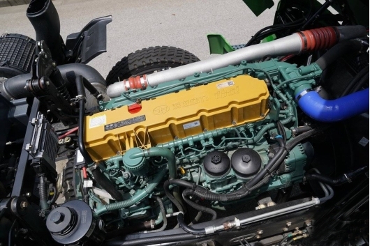 對于當下的標載輕量化自卸車來說,動力鏈的匹配至關重要,如果既想要滿足油耗、動力,又要求輕量化,那么之前那種10升排量的發動機已經不適用這種車型了。所以在動力匹配上該車是選擇的8升排量段的發動機,為解放動力自家的鉑威CA6DK2發動機,具備350的馬力輸出,最大輸出扭矩為1450牛米,低速扭矩在800轉速時就可爆發出950牛米的峰值扭矩。