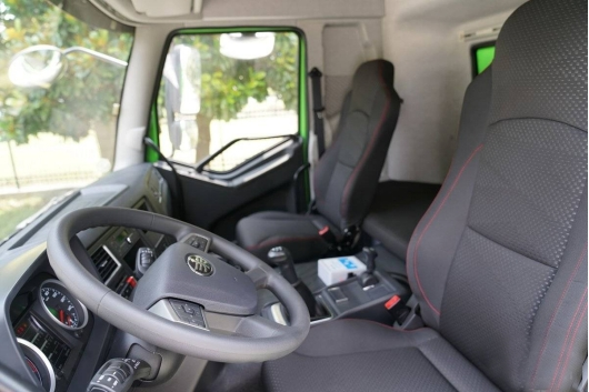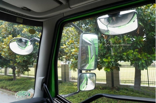 不僅如此,考慮到自卸車要經常實行在城市道路上,在車多人多的情況下,視野觀察就變得很重要。那么這款自卸車先是降低儀表臺的整體高度,這樣車內前下的視野范圍得到拓寬,車前有人也比較容易看到。