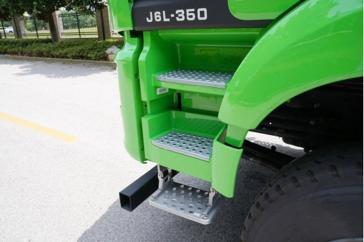 另外,該車駕駛室的蹬車踏板采用三階式設計,在第一階級還采用可活動式的設計,好處就是在工地這種惡劣環境下作業,就算發生磕碰也不會損壞。而第二、第三階級是采用全包裹防滑的設計,雨雪天氣蹬車時腳滑的幾率大大降低。